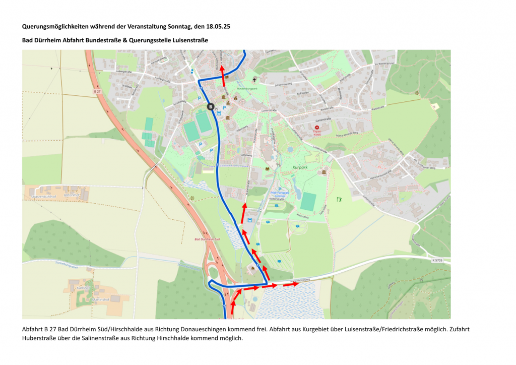 Wir bedanken uns vorab für das Verständnis, dass es zu Beeinträchtigungen des Verkehrs im Rahmen unserer Veranstaltung am 18. Mai 2025 kommen wird. Unsere telefonische Infoline ist unter 07721-9906915 für Fragen bezüglich Streckensperrungen und Umleitungen erreichbar.
